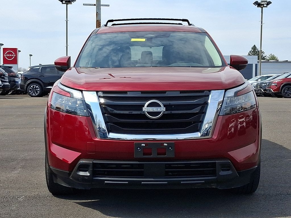 SV PREMIUM PACKAGE! NISSAN CERTIFIED 7 YEAR/100,000 MILE WARRANTY INCLUDED! 1-OWNER/CLEAN CARFAX! Come visit your Dealer for life...Check out our reviews, Come and enjoy your best shopping experience! Certified. Clean CARFAX. CARFAX One-Owner. Scarlet Ember Tintcoat 2023 Nissan Pathfinder SV Premium 4WD 9-Speed Automatic V6 O'Neil Nissan is the Most Awarded Dealer in PA, 3-Time Global Award 21-22-23, 7-Time Owners First Award of Excellence, Family Owned and Operated for almost 40 years, Check Out Our Reviews, 4WD, 18" Painted Alloy Wheels, 2nd-Row Captain Chairs, 2nd-Row Removable Center Console, 3rd row seats: bench, Auto High-beam Headlights, Automatic temperature control, Captain's Chairs Carpeted Floor Mats (Set of 4), Cross Bars, Front dual zone A/C, Fully automatic headlights, Heated door mirrors, Heated front seats, Illuminated Kick Plate, Leather steering wheel, Lighting Package (N92), NissanConnect featuring Apple CarPlay and Android Auto, Panoramic Moonroof, Power door mirrors, Power driver seat, Power Liftgate w/Position Memory, Premium Paint - Scarlet Ember Tintcoat, Radio: AM/FM Audio System w/NissanConnect, Rear Parking Sensors, Rear window defroster, Reclining 3rd row seat, Remote keyless entry, Security system, Speed control, Steering wheel mounted audio controls, SV Premium Package, Tow Hitch Receiver & Harness, Turn signal indicator mirrors, Welcome Lighting.